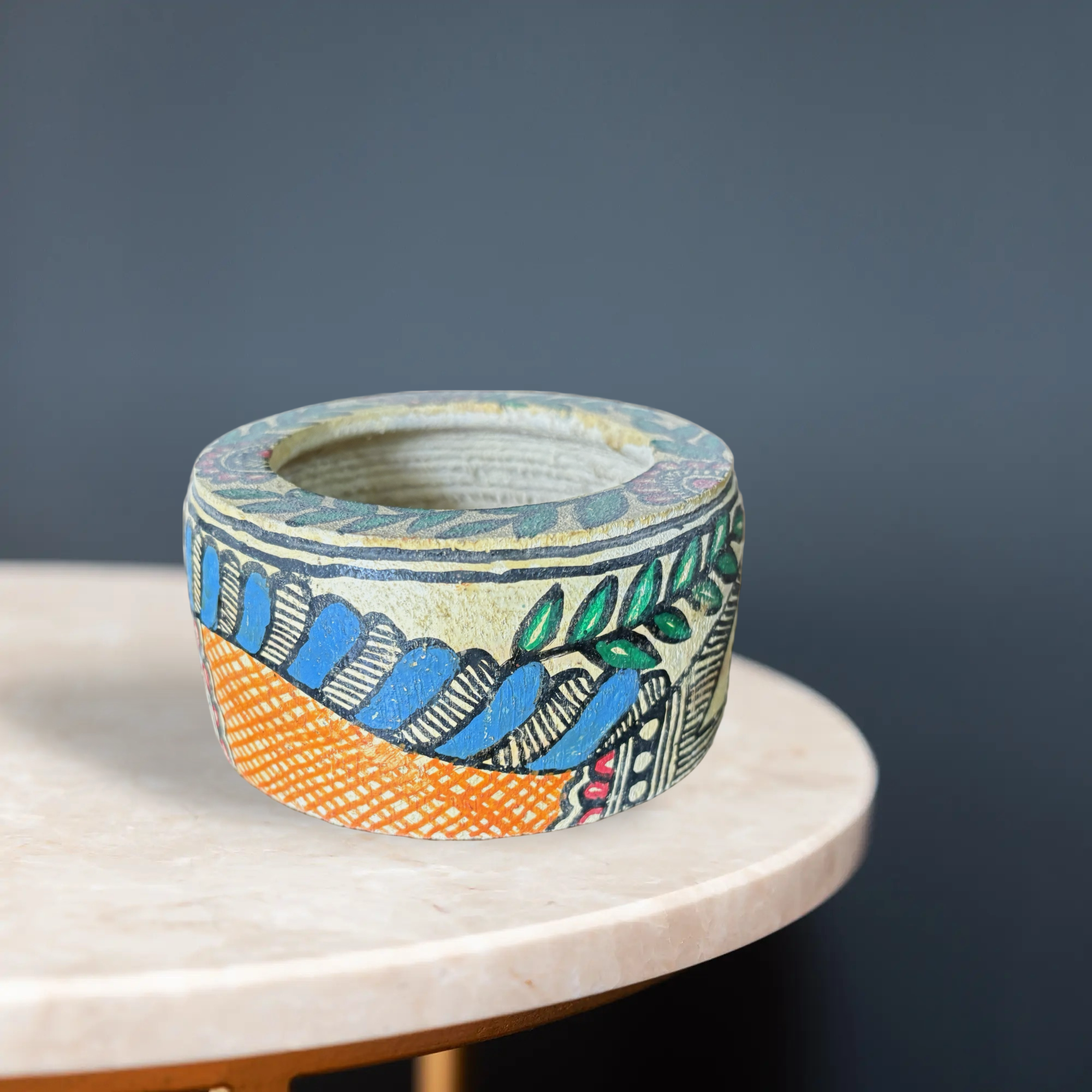 Crafted from eco-friendly material and painted by skilled Mithila artisans, this piece goes beyond utility—it transforms into a functional work of art. Its rustic texture combined with vibrant colours makes it a unique addition for both daily use and décor.