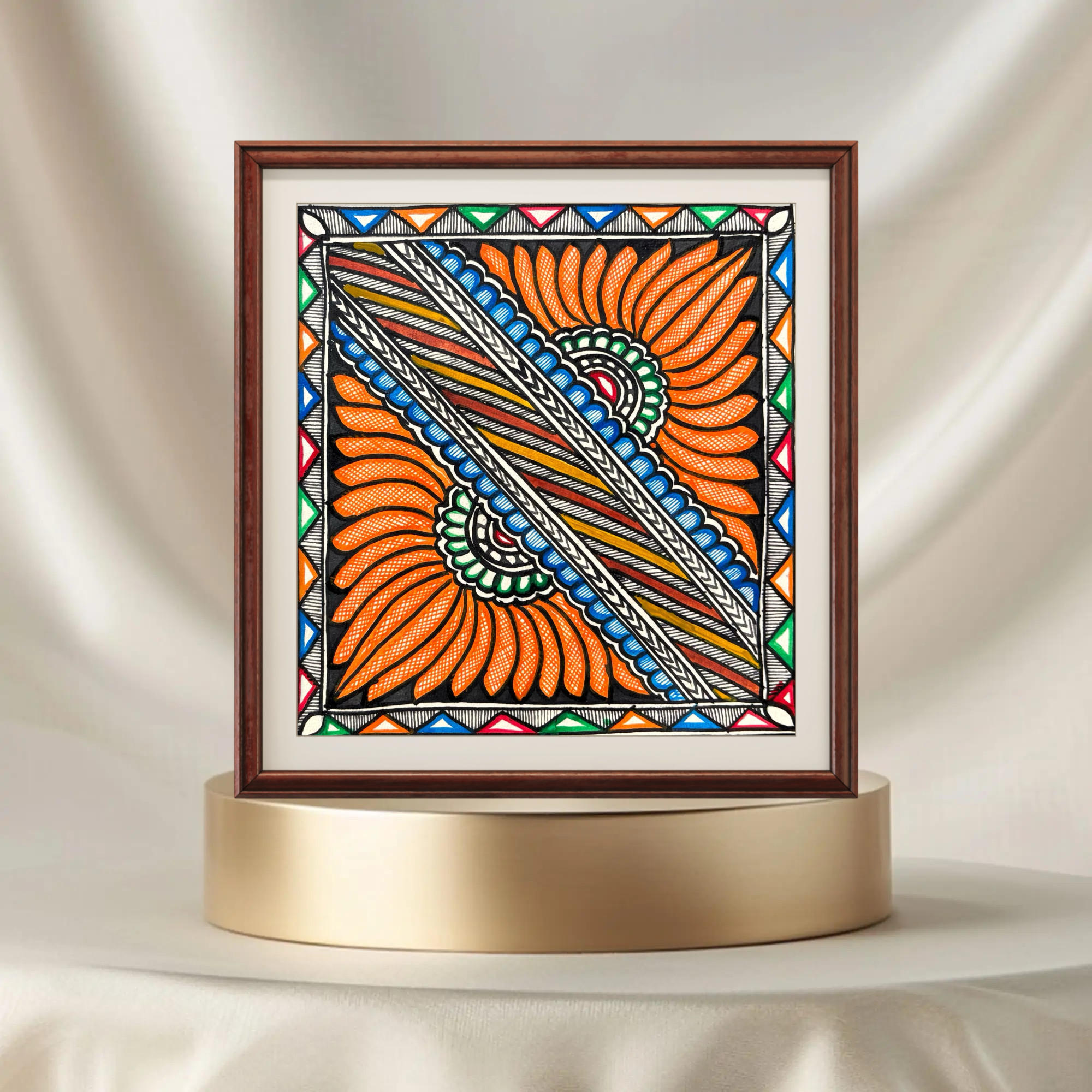 - Authentic hand-painted artwork in the traditional Madhubani style on handmade paper