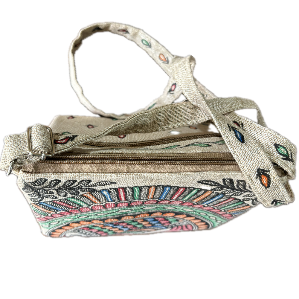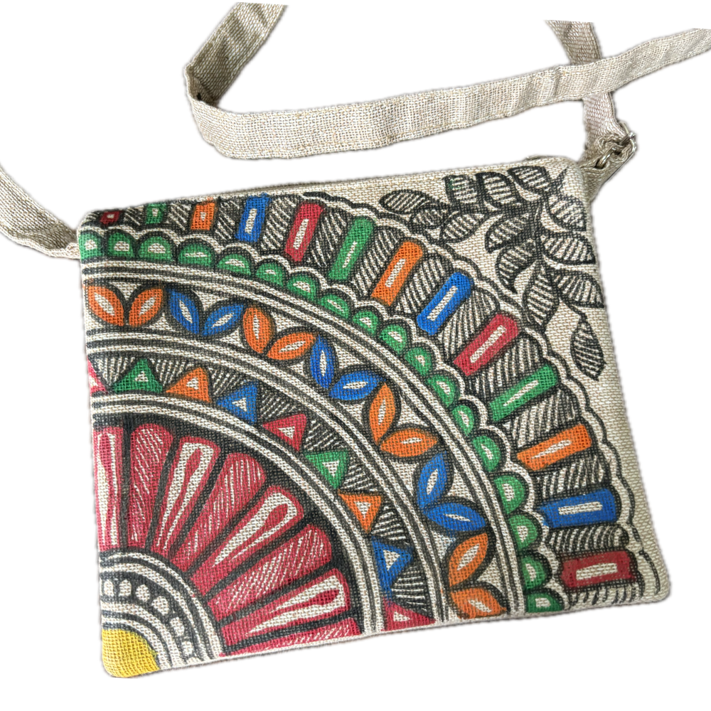 Madhubani Painted Handmade Cross-body Sling bag | Sun Design